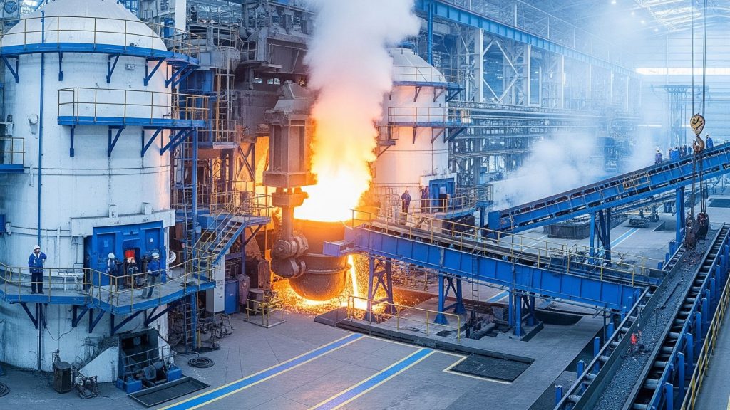 Basic Oxygen Furnace (BOF) veya Elektrik Ark Ocağı (EAF) sistemleri kullanılarak: