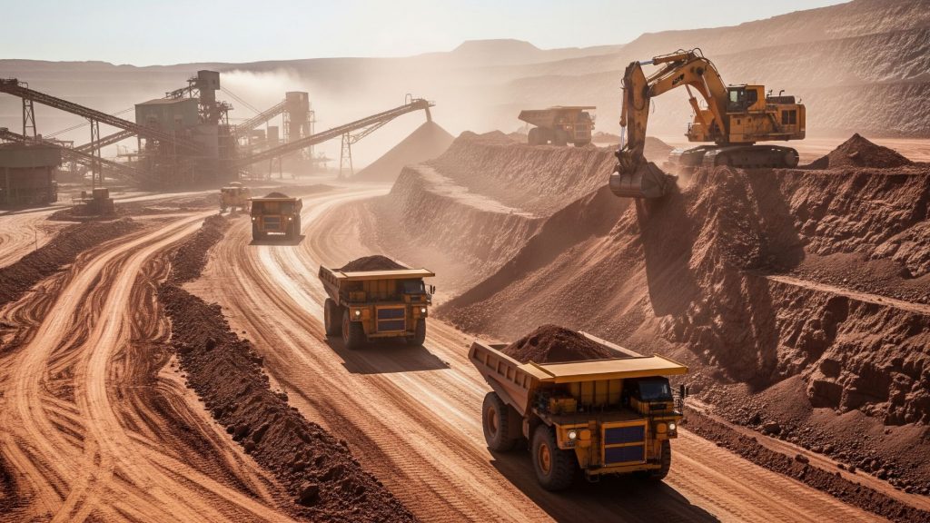 Cevher, patlayıcılar ve büyük ekskavatörlerle kazılarak yüzeye taşınır.