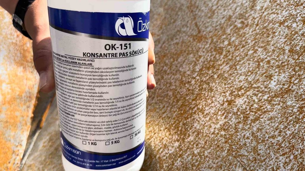 Demirdeki pasın çıkarılabilmesi için Özkimsan Endüstri Kimyasalları tarafından üretilen OK-151 konsantre pas sökücü ürünün kullanılması gerekir. Hemen aşağıda bulunan video ile demirdeki pas nasıl çıkar detaylı bir şekilde izleyebilirsiniz.