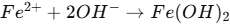 Demir hidroksitin oluşumu: Fe²⁺ iyonları OH⁻ iyonlarıyla birleşerek çözünmeyen demir hidroksit oluşturur.