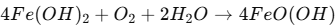 Demir oksite dönüşüm: Fe(OH)₂ atmosferdeki oksijenle tepkimeye girerek pas olarak bilinen demir oksit-hidroksite dönüşür.