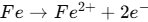 Demirin oksitlenmesi: Demir, elektronlarını kaybederek Fe²⁺ iyonlarına dönüşür.