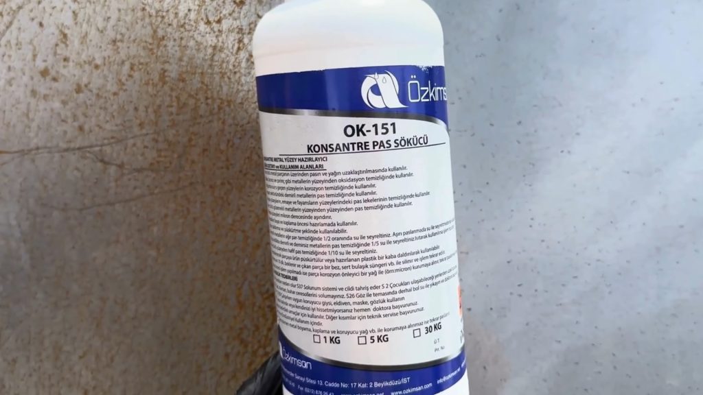 Özkimsan Endüstri Kimyasalları tarafından üretilen OK-151 pas sökücü konsantre bir kimyasaldır. Pasın yoğunluğuna göre su ile 1/7 oranına kadar seyreltme yapılabilir. Ardından bir püskürtücü içerisine konur. Paslı olan alana ürün sıkılır. Pas çözünmeye başlar. Yaklaşık 1 saat beklenir. Pasın sökülmediği alanlarda uygulama tekrarı yapılabilir.