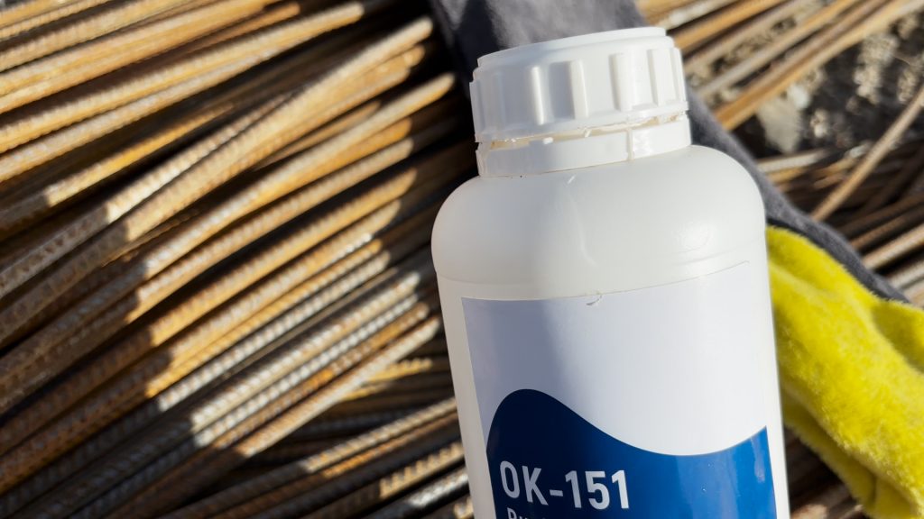 Paslanan inşaat demiri; Özkimsan Endüstri Kimyasalları tarafından üretilmekte olan konsantre pas sökücü OK-151 kullanılarak temizlenir.