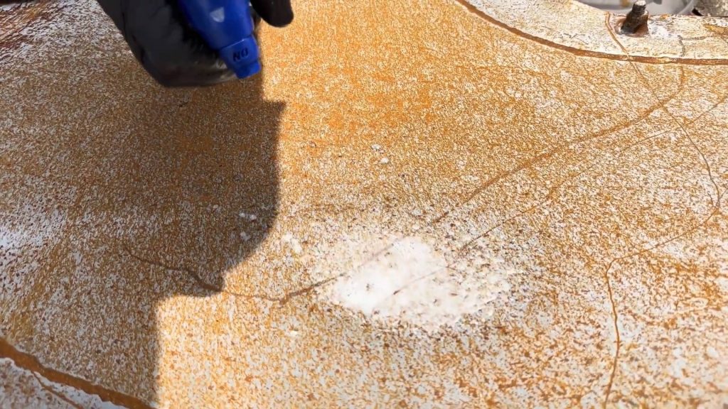 Kimyasal reaksiyon sonucunda demir oksit çözülür ve yüzey yeniden temiz, parlak metale dönüşür. Ardından yüzey boyaya hazır hale gelir.
